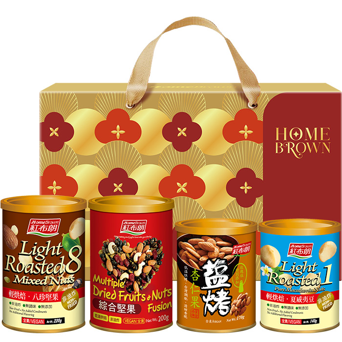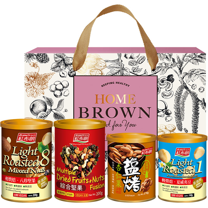 【紅布朗】粉漾年華堅果禮盒(八珍堅果+綜合堅果+鹽烤杏仁果+夏威夷豆) (年節禮盒|春節禮盒|過年伴手禮|尾牙禮品)
