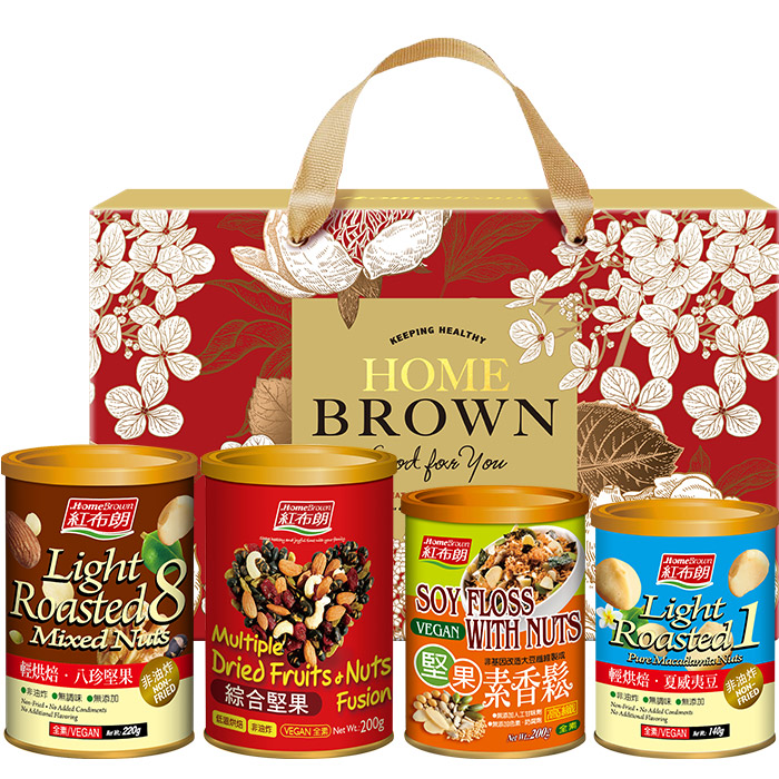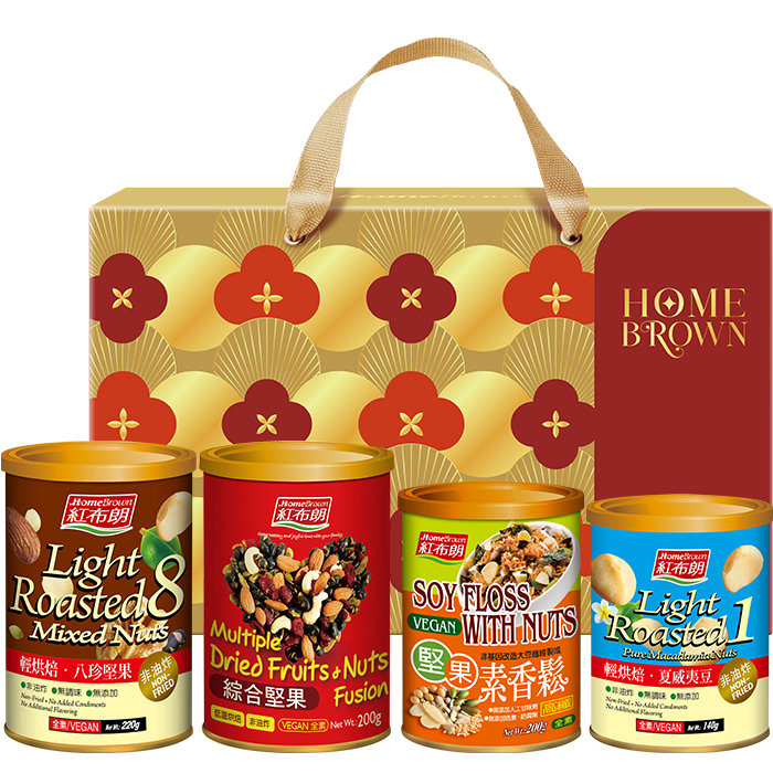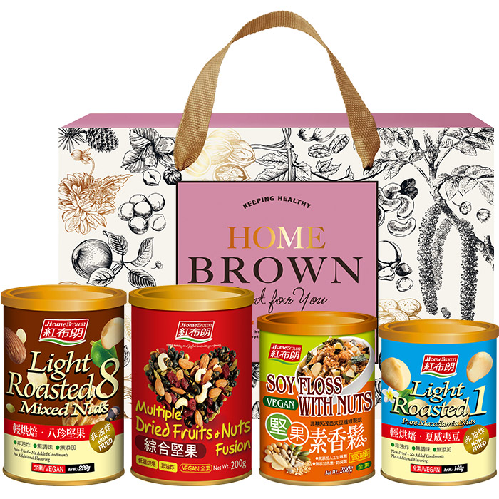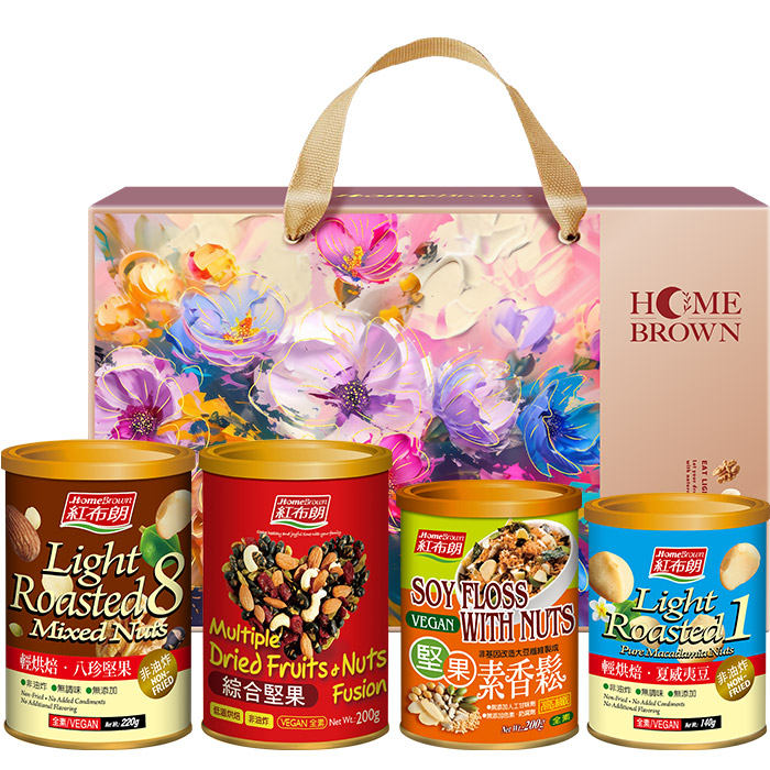 【紅布朗】粉漾歲月堅果禮盒(八珍堅果+綜合堅果+堅果素香鬆+夏威夷豆) (年節禮盒|春節禮盒|過年伴手禮|尾牙禮品)