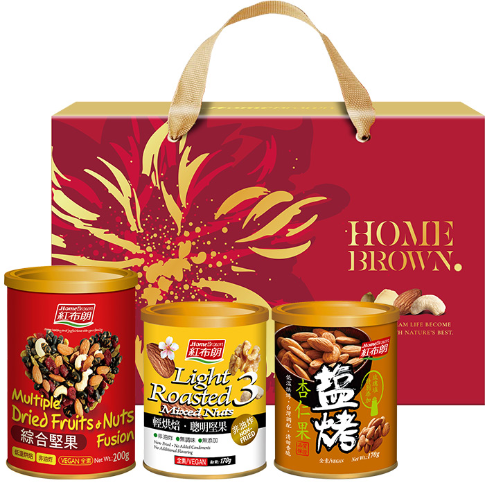 【紅布朗】人氣經典堅果禮盒(綜合堅果+聰明堅果+鹽烤杏仁果) (年節禮盒|春節禮盒|過年伴手禮|尾牙禮品)