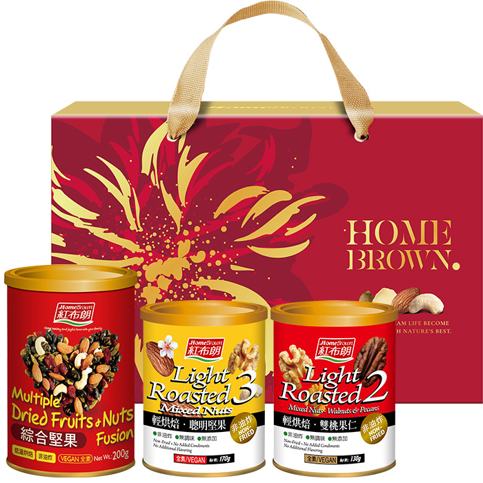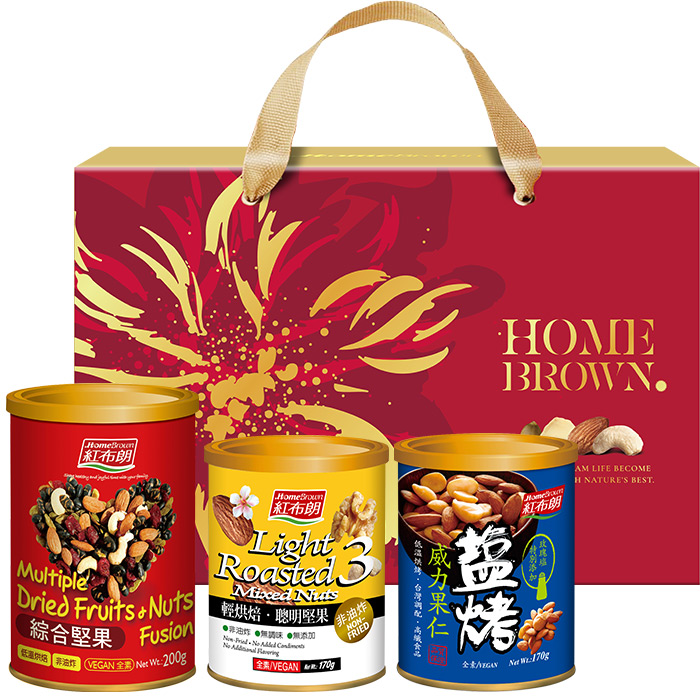 【紅布朗】花好月圓堅果禮盒(綜合堅果+鹽烤杏仁果+鹽烤威力果仁)