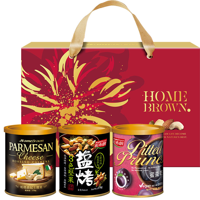 【紅布朗】新春團圓堅果禮盒(帕瑪森起士腰果+鹽烤3色堅果+蜜棗乾)