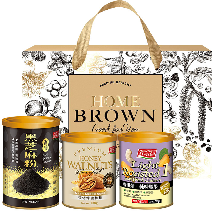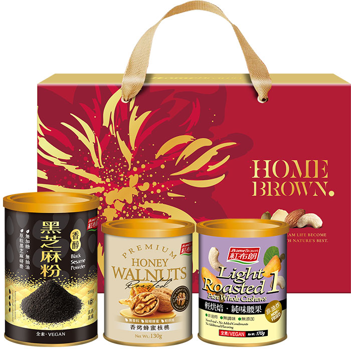 【紅布朗】闔家安康穀粉堅果禮盒(香醇黑芝麻粉+香烤蜂蜜核桃+輕烘焙純味腰果) (年節禮盒|春節禮盒|過年伴手禮|尾牙禮品)