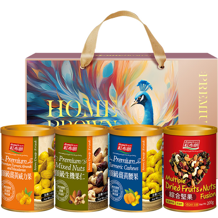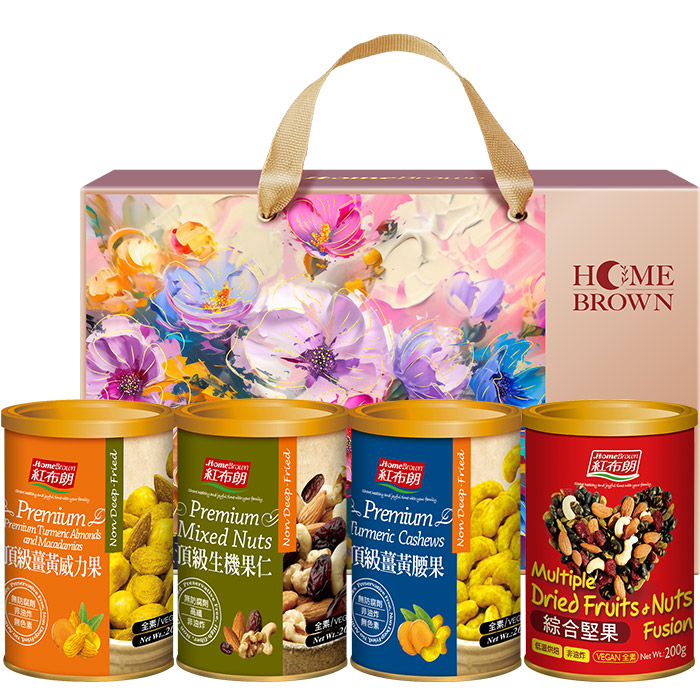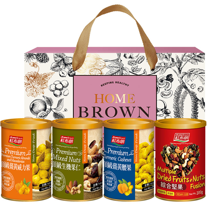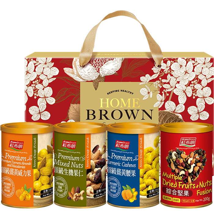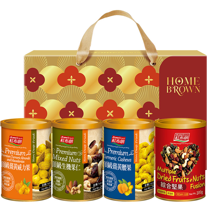 【紅布朗】品味金典4入堅果禮盒(頂級薑黃威力果+頂級生機果仁+頂級薑黃腰果+綜合堅果) (年節禮盒|春節禮盒|過年伴手禮|尾牙禮品)