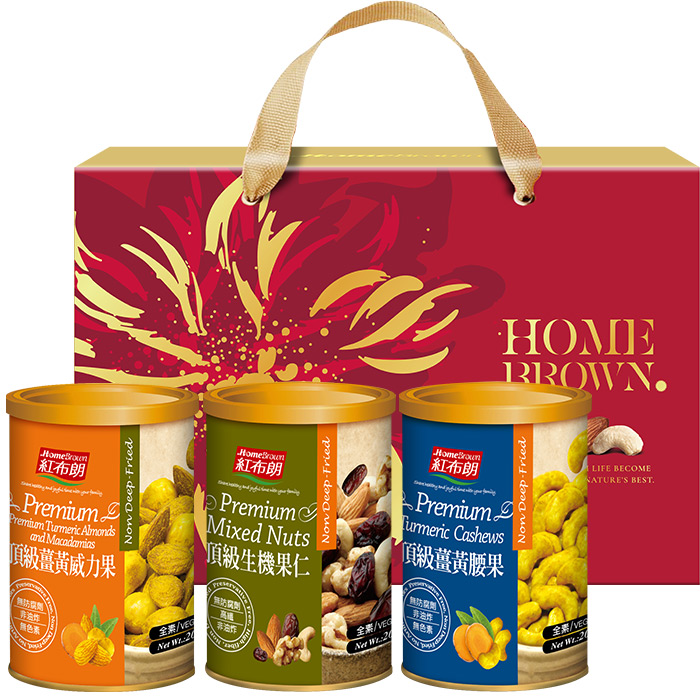 【紅布朗】頂級堅果禮盒(薑黃威力果+生機果仁+薑黃腰果) (年節禮盒|春節禮盒|過年伴手禮|尾牙禮品)