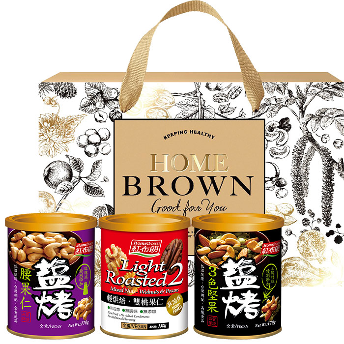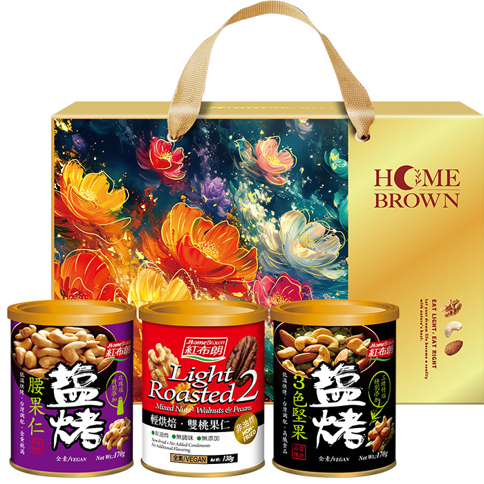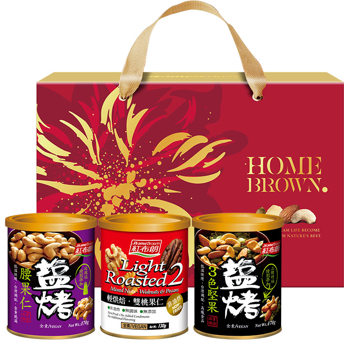 【紅布朗】幸福金緻堅果禮盒(鹽烤腰果仁+雙桃果仁+鹽烤3色堅果) (母親節禮盒|端午節禮盒|零食伴手禮|春酒禮品)