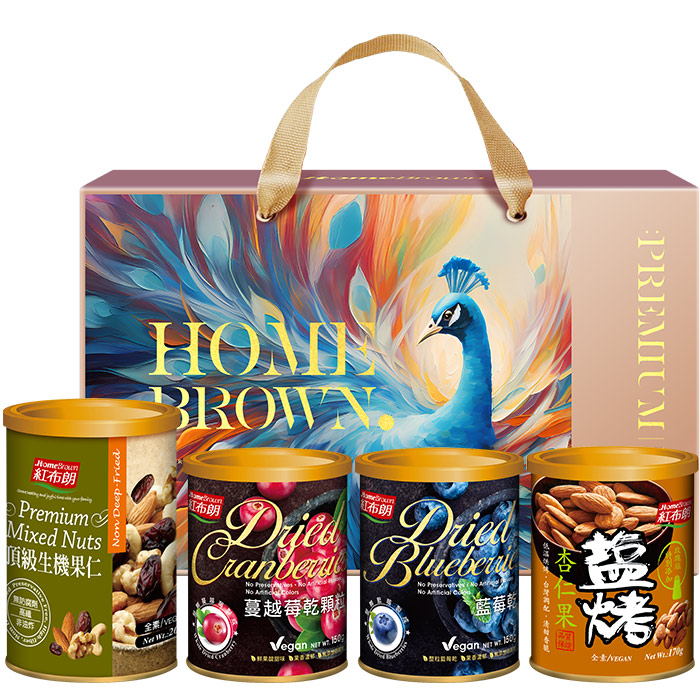 【紅布朗】心想事成果乾堅果禮盒(頂級生機果仁+蔓越莓乾+藍莓乾+鹽烤杏仁果)