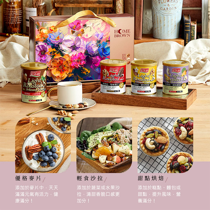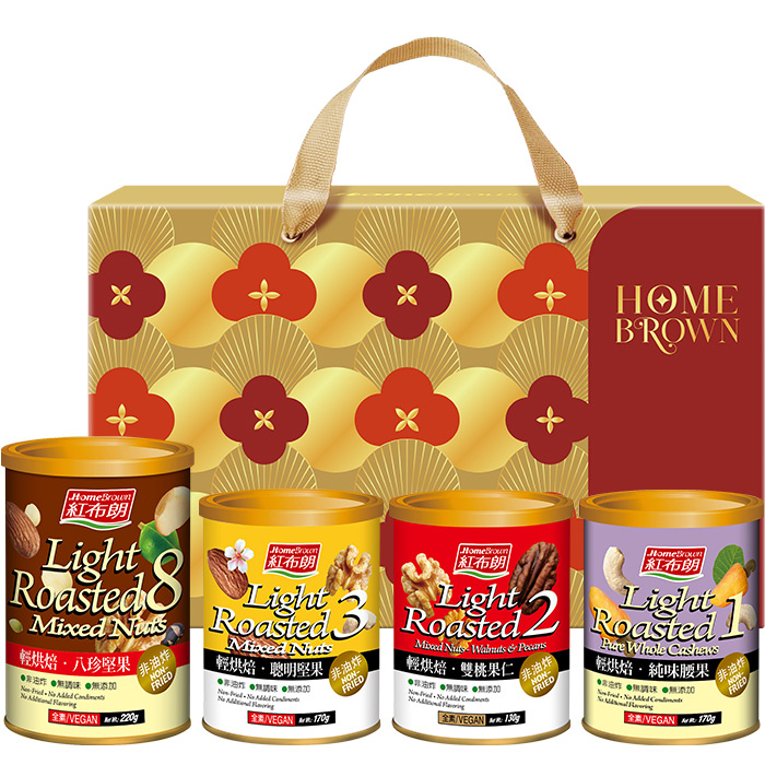 【紅布朗】輕烘焙純真美好堅果禮盒(八珍堅果+聰明堅果+雙桃果仁+純味腰果) (年節禮盒|春節禮盒|過年伴手禮|尾牙禮品)