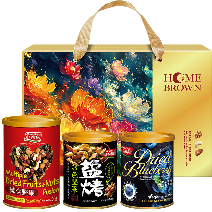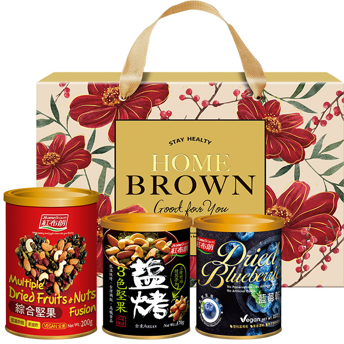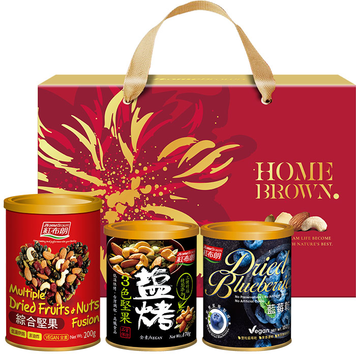 【紅布朗】端午安康堅果禮盒(綜合堅果+鹽烤3色堅果+藍莓乾) (母親節禮盒|端午節禮盒|零食伴手禮|春酒禮品)
