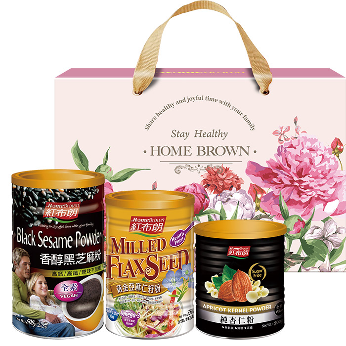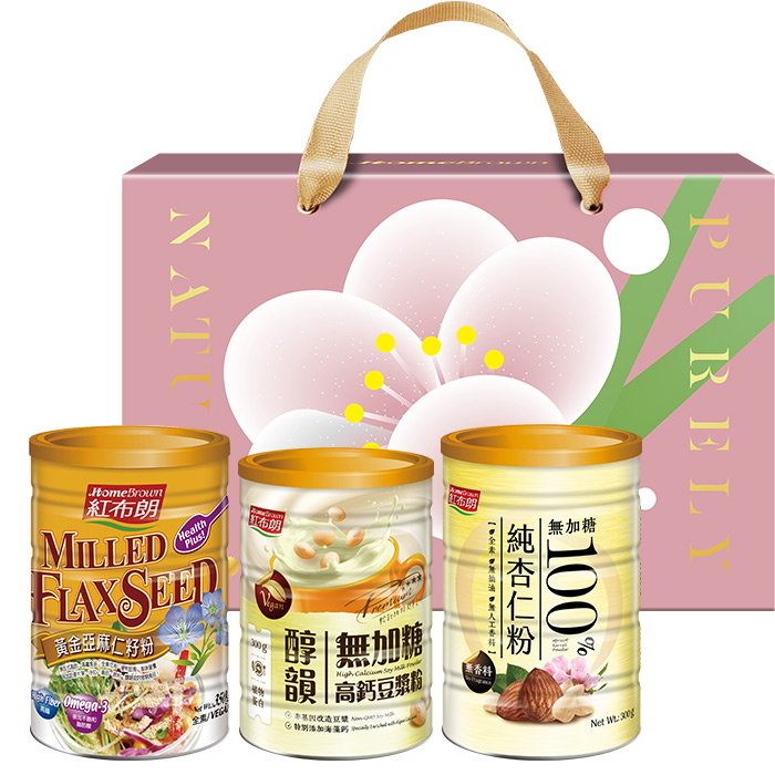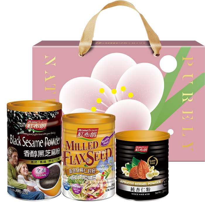 【紅布朗】食尚森活沖泡穀粉禮盒(香醇黑芝麻粉+黃金亞麻仁籽粉+純杏仁粉) (母親節禮盒|端午節禮盒|零食伴手禮|春酒禮品)