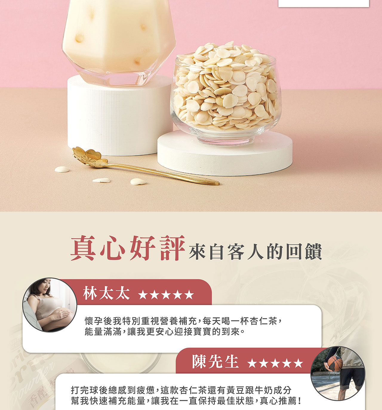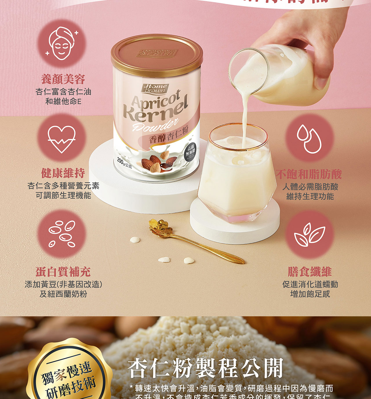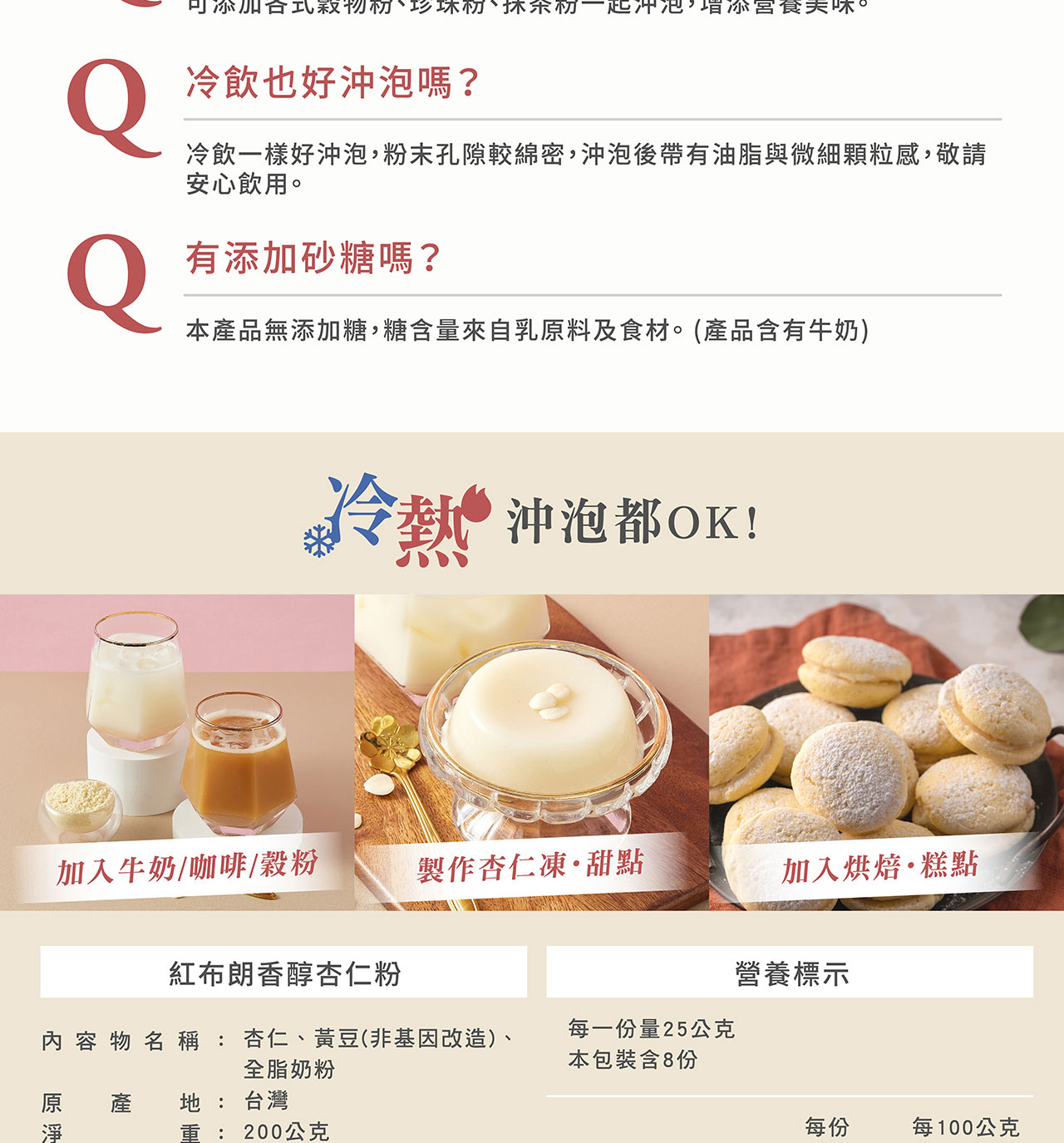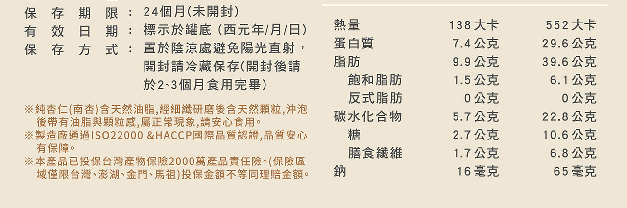 ★ 香醇杏仁粉→低溫烘焙經細緻研磨,口感溫潤滑順,冷熱沖泡都OK!