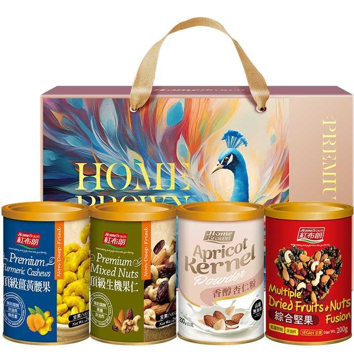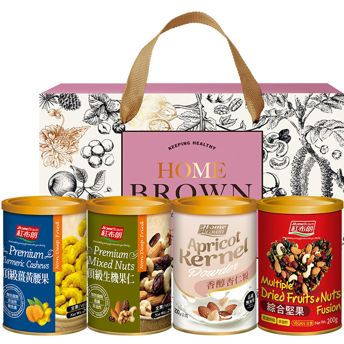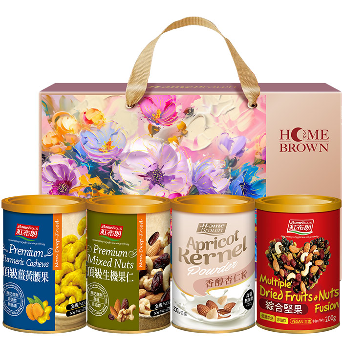 【紅布朗】品味金典穀粉堅果禮盒(頂級薑黃腰果+頂級生機果仁+香醇杏仁粉+綜合堅果) (母親節禮盒|端午節禮盒|零食伴手禮|春酒禮品)