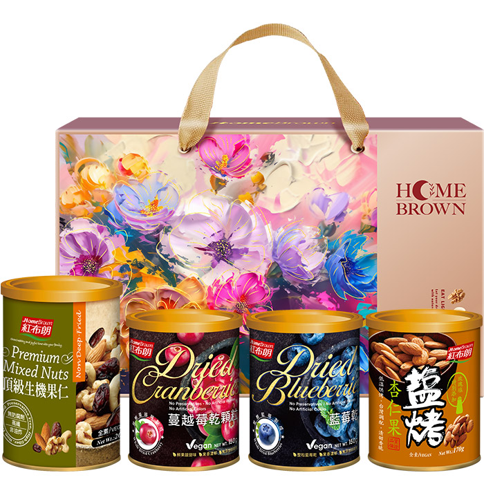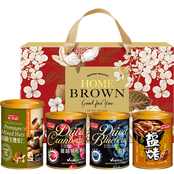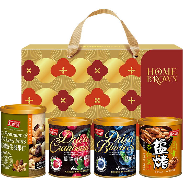 【紅布朗】心想事成果乾堅果禮盒(頂級生機果仁+蔓越莓乾+藍莓乾+鹽烤杏仁果) (年節禮盒|春節禮盒|過年伴手禮|尾牙禮品)